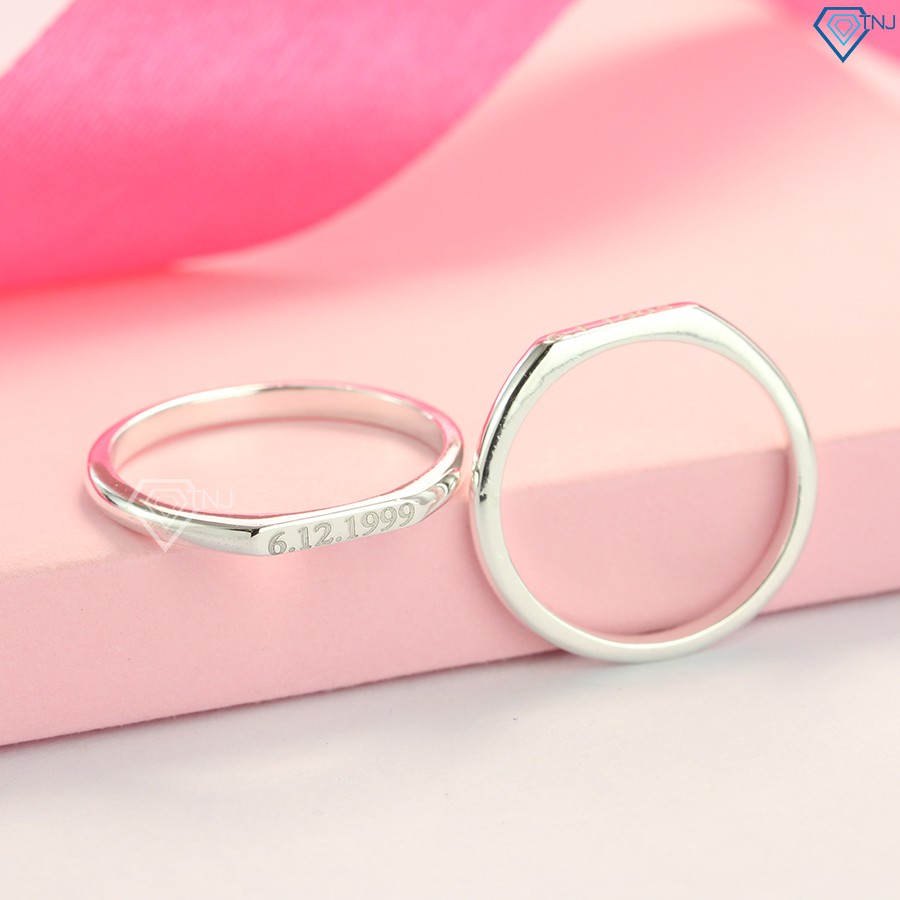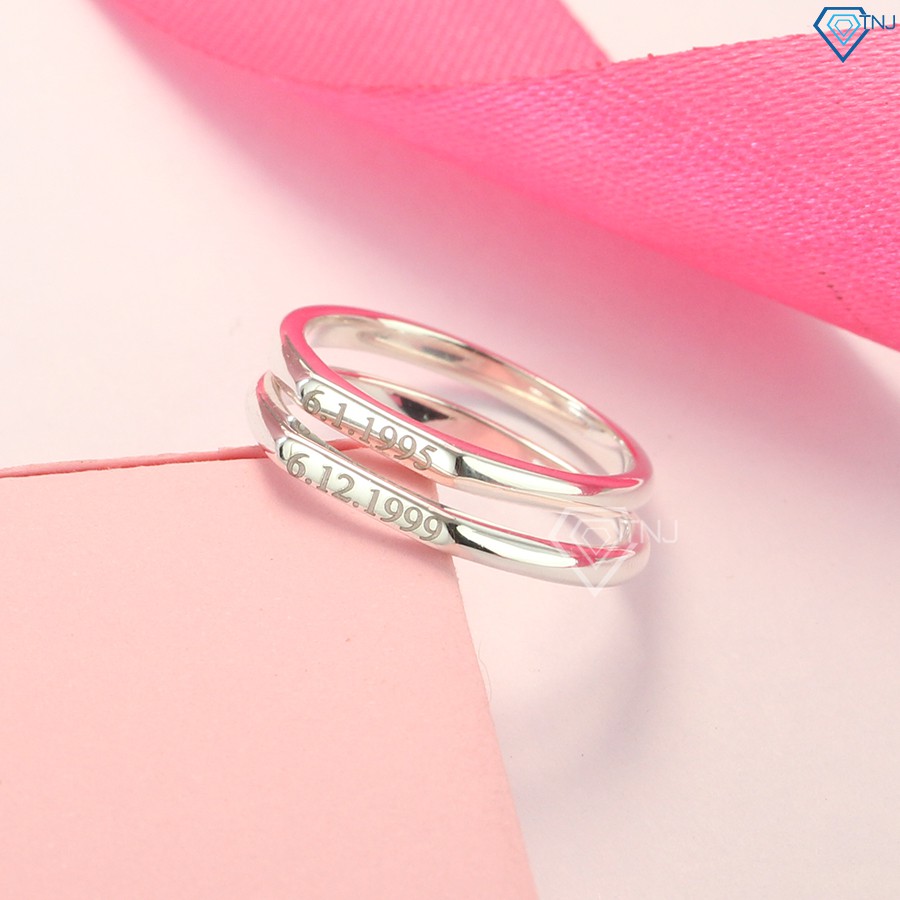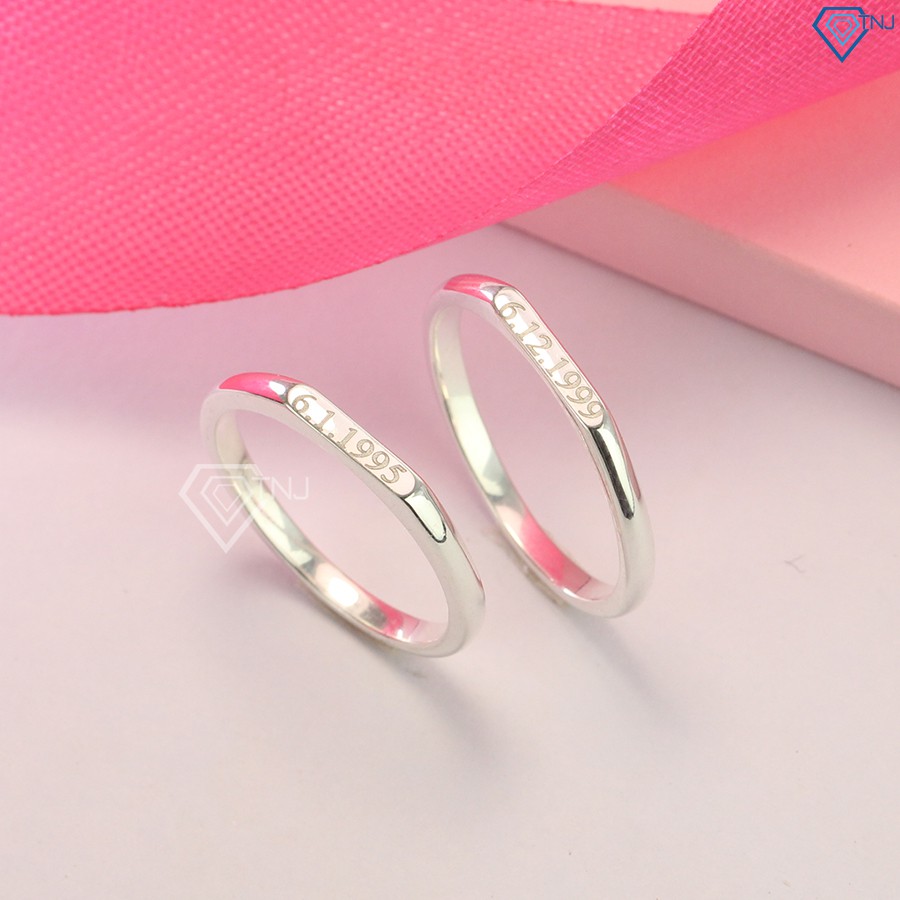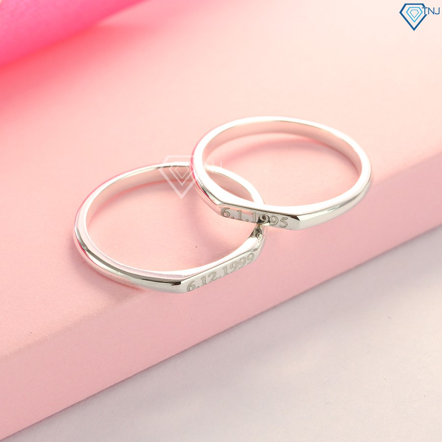 Nhẫn đôi bạc, nhẫn cặp bạc đơn giản khắc tên theo yêu cầu ND0407