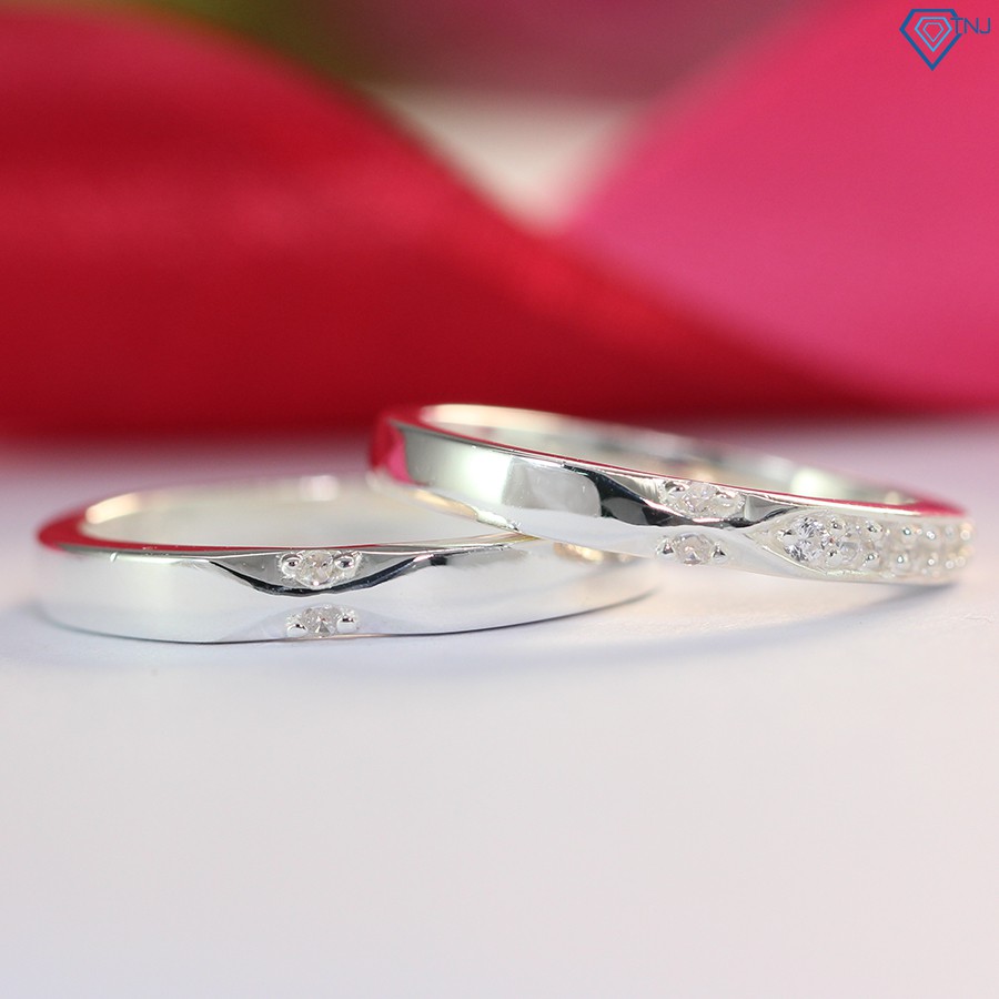 Nhẫn đôi bạc, nhẫn cặp bạc đẹp đính đá tinh tế ND0368 - Trang Sức TNJ free ship