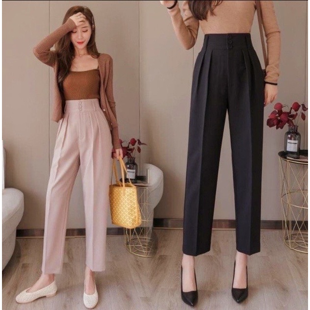 Quần ống suông cạp cao gen bụng khoá trước, mặc rộng thoải mái cực tôn dáng cho nữ